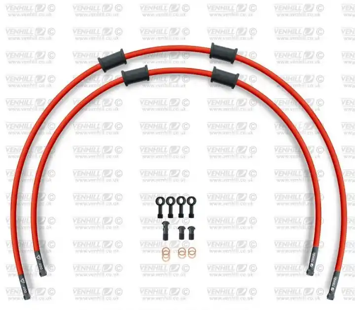 Pouze Dnes CROSSOVER Hadice přední brzdy sada Venhill POWERHOSEPLUS HON-10015FB-RD (2 hadice v sadě) červené hadice, černé koncovky